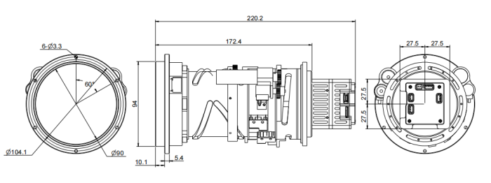 Φ110 (ෆ්ලැන්ජ්) × 221mm, φ120 (උපරිම සමස්ත මානය) |